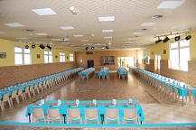Salle entièrement équipée : Tables, chaises, vaisselle, four, frigidaires (2), 1 congélateur...